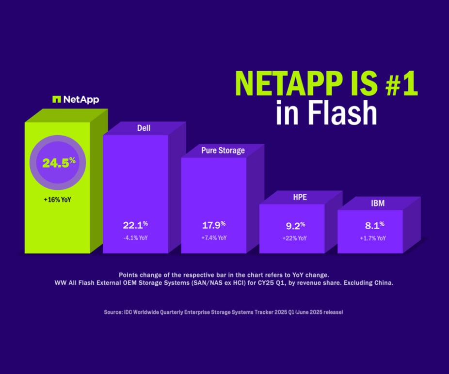 So, how did we get here? Spoiler alert: It wasn’t luck. It was 33+ years of pushing boundaries, challenging the status quo, and building intelligent data infrastructure that’s always one step ahead. And now, the industry has spoken: NetApp is leading the flash game.